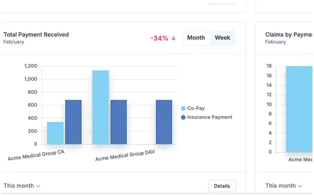 Real-time tracking of billing performance, revenue cycles, and claim accuracy.